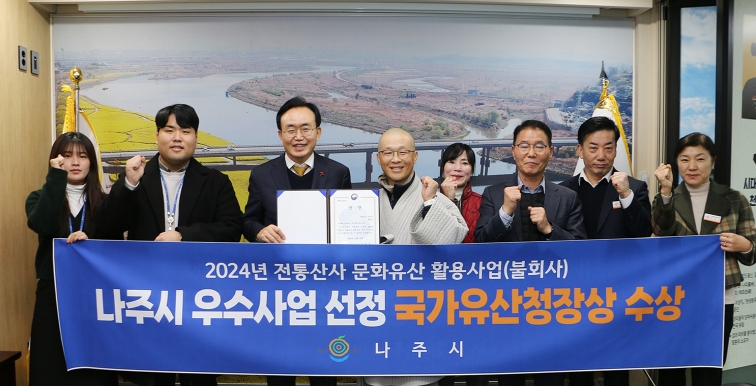 윤병태 나주시장은 20일 불회사 주지 철인스님을 초청해 소관 부서 직원들과 함께 노고와 성과를 격려하며 국가유산청장상 수상을 축하했다.