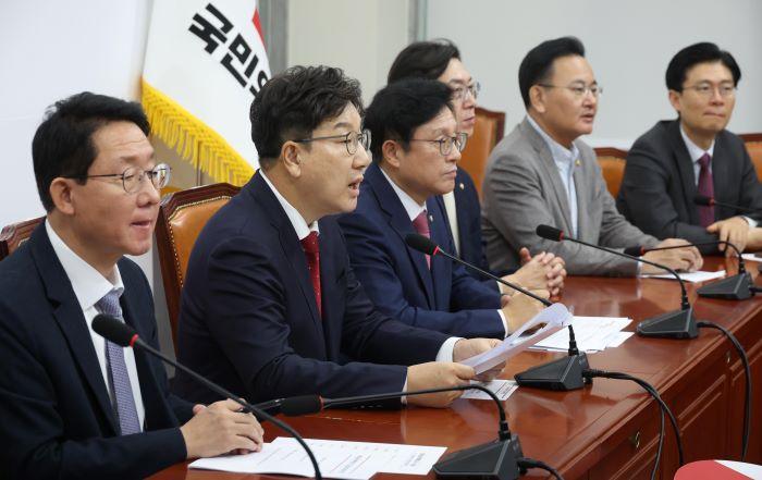이에 김상훈 정책위의장은 "선관위의 편파적인, 정략적인 행태"라며 "선관위가 무슨 자격과 권한으로 윤석열 대통령 탄핵 인용을 사실상 기정화하면서 조기 대선 운운하는 것인지 묻고 싶다"고 말했다.