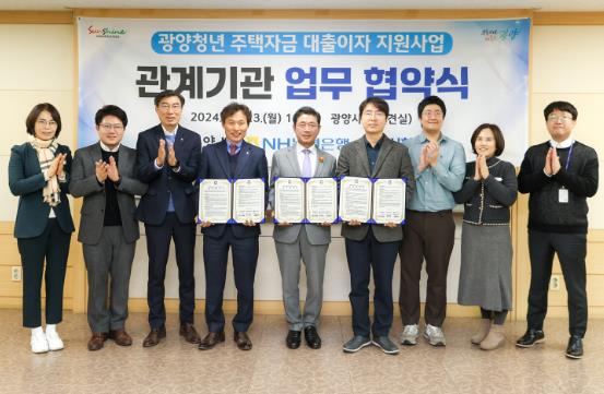 한편, 광양시는 이번 협약을 통해 19세부터 45세 이하의 광양시 무주택 청년들에게 최대 3%의 이자를 지원한다.