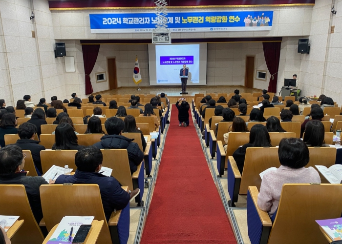 시교육청은 사례집 활용을 높이기 위해 23일 광주교육연수원에서 공립학교 행정실장 258명을 대상으로 ‘2024년 학교관리자 노사관계 및 노무관리 역량강화 연수’를 진행했다. 이어 노무관리 전문가를 위촉해 현장 수요가 높은 노사관계 갈등 예방·관리 방법 등에 대한 강의를 진행했다.
