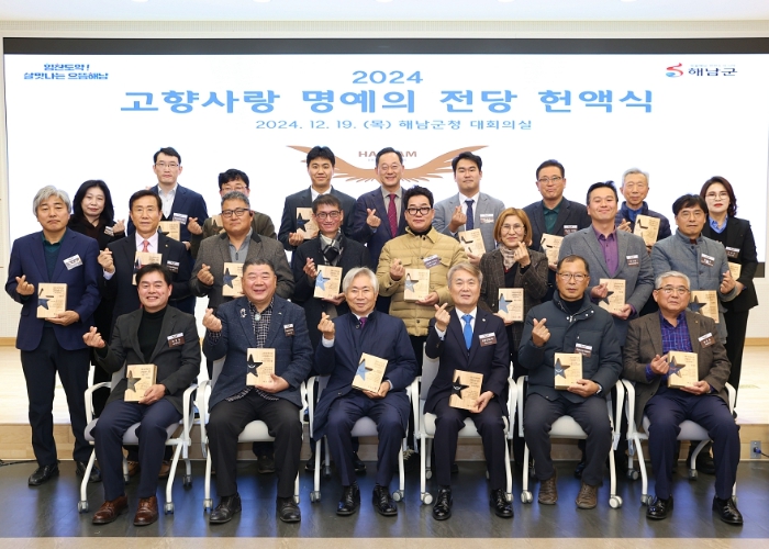 해남군 고향사랑 명예의 전당은 지난해 3월 해남군 청사 2층 역사관에 조성되어 운영되고 있다. 헌액 대상은 해남군 고향사랑기금과 장학사업기금 누적 기탁액 500만원 이상을 기탁한 개인 및 단체이다.
