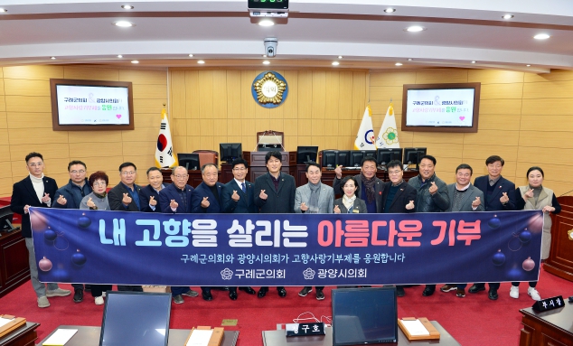 이번 상호기부를 통해 두 지방의회는 지역 간 연대 의식을 높이고, 고향사랑기부제의 의미를 적극 홍보함으로써 기부 문화 확산과 지방소멸 문제 극복에 힘을 보탰다.