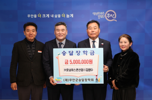 김생수 대표는 기탁식에서 “지역 인재 양성과 사회 발전에 기여하고자 꾸준히 장학금을 기탁했다”며, “지속적인 나눔 실천을 통해 지역의 희망인 학생들이 무안군을 빛내주는 인재로 성장하는 데 밑거름이 되도록 기탁금이 소중히 사용되기를 바란다”고 전했다.