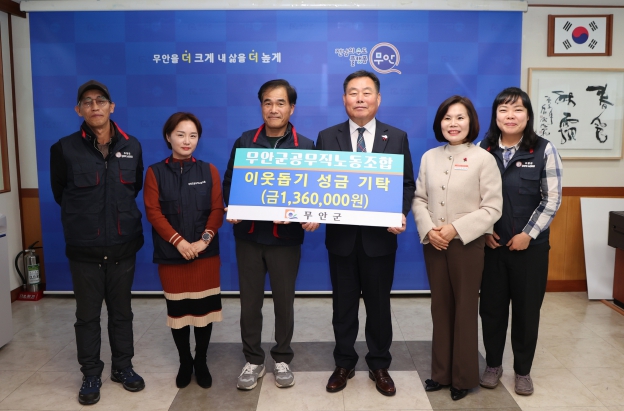 김산 군수는 “어려운 이웃을 위해 따뜻한 손길 내어주신 무안군 공무직노조 서갑신 위원장님과 조합원들께 감사드린다”며 “군에서도 연말연시 지역사회로 나눔문화가 확산하도록 최선을 다하겠다”고 전했다.