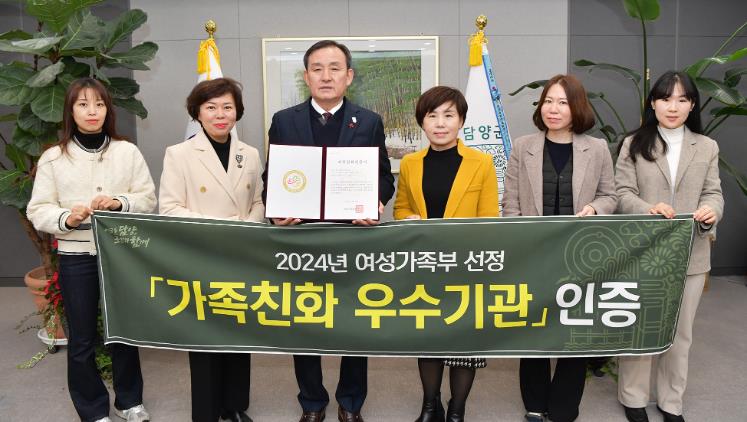 담양군은 2016년 처음 우수기관으로 선정된 이후 다시 우수기관으로 인증받았으며, 출산·육아휴직 및 유연근무제 활성화, 가족힐링의 날 추진 및 직장동호회 운영, 휴양시설 제공 등의 직원 복지 확대 등으로 가족 친화적인 근무 환경을 조성해 높은 평가를 받았다.