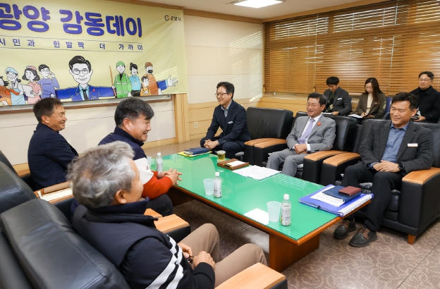 정인화 광양시장은 ▲다압취수장 관련 죽천마을 규제 해제 건의 ▲토석채취장 허가 관련 피해 대책 마련 ▲주택 옆 옹벽·주차장 조성으로 인한 피해 호소 ▲관내 유기질비료업체의 사업·수출 지원 및 관급자재 구매 요청 등 건의 사항에 대해 의견을 나누고 시민, 관계 부서장 등과 함께 해결책을 고민했다.