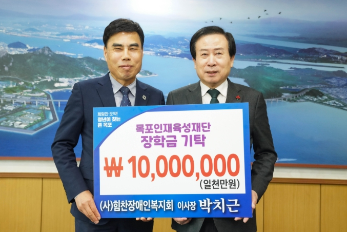 광주에 소재한 힘찬장애인복지회는 지난 2022년부터 올해까지 매년 목포인재육성재단에 장학금 1천만원을 기탁했으며, 올해 5월에는 목포장애인체육회에 1천만원을 기탁하는 등 저소득 취약계층을 위한 지원을 아끼지 않고 있다.