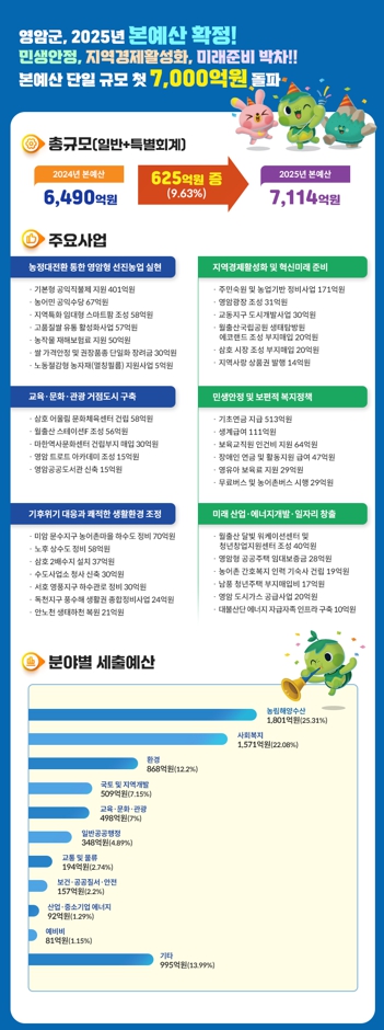 영암군은 정부 긴축재정 기조 속, 건전재정을 유지하면서 민생 안정, 미래 준비 등 민선8기 혁신 군정의 결실을 맺기 위해 예산 편성을 했다.