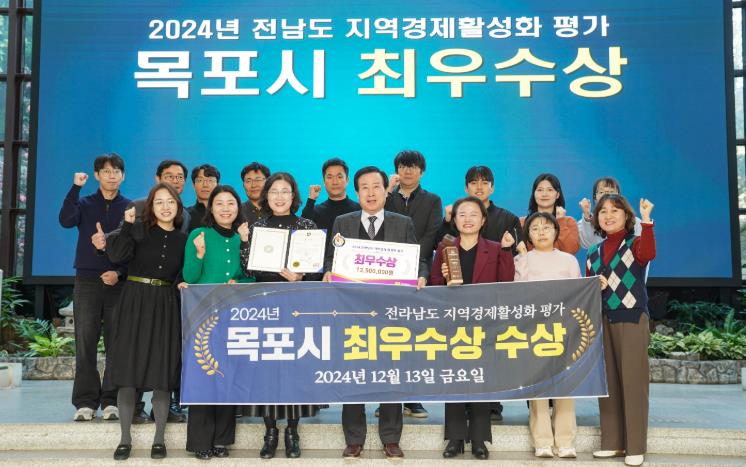 2024년 한 해동안 22개 시군을 대상으로 지역경제활성화 평가결과 목포시가 최우수상을 수상해 시상금 1천3백5십만원을 수여받았다.