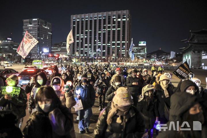 이날 송년회 약속을 파투내고 집회에 나왔다는 동국대 재학생 최모씨는 "탄핵안이 가결된 것은 국민적 합의가 이뤄졌다는 것과 다름없는데, 헌법재판관을 임명하지 않겠다는 것은 내란공범들이 살아날 궁리할 시간을 어떻게든 벌어보겠다는 것 아니냐"고 목소리를 높였다.