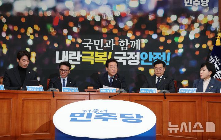 이재명 대표는 이날 국회 본청에서 열린 최고위원회의에서 "범죄자가 동네를 버젓이 돌아다니면 누가 안심하고 물건을 사고 경제 활동을 정상적으로 하겠나"라며 "12·3 내란 사태 때문에 소비 심리가 코로나 팬데믹에 비견될 정도로 최악"이라고 밝혔다.