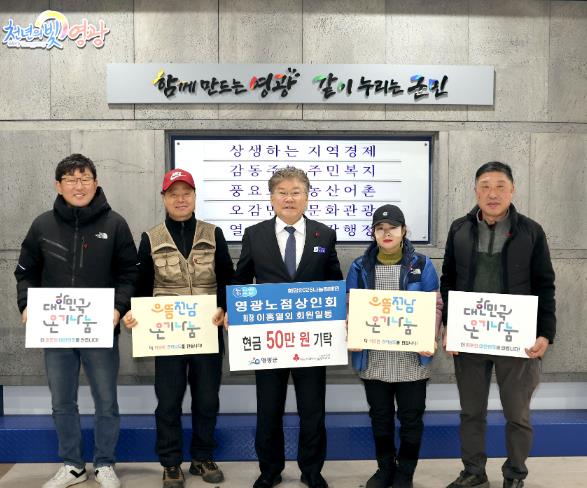 영광군 관계자는 “얼어붙은 경기로 더욱 어려움을 겪고 계실 노점상인회에서 이렇게 소중한 성금을 기탁해 주셔서 감사하며 기탁해 주신 성금은 꼭 필요한 곳에 사용될 수 있도록 하겠다”라고 전했다.