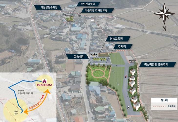 현산면 시등마을 일원에는 2026년까지 50억원을 투입, 마을 내 위해시설인 폐도정 공장과 빈집 6개소를 철거하고 그 부지를 활용해 귀농귀촌인 임대주택, 월송 쉼터, 마을 공용주차장 등을 조성할 계획이다.