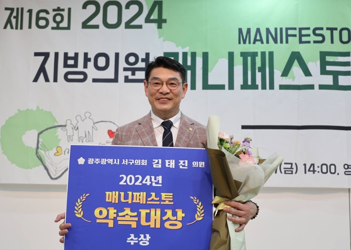 김태진 의원은 △‘광주광역시 서구 위기가구 발굴 및 지원에 관한 조례 △‘광주광역시 서구 기후위기 대응 기본 조례’△ ‘광주광역시 서구 인플루엔자 예방접종 지원에 관한 조례에 대해 입법 시급성, 지역주민 삶의 질 및 지역발전을 위한 효과성, 독창성을 인정받아 좋은 조례 분야 최우수상을 수상했다.
