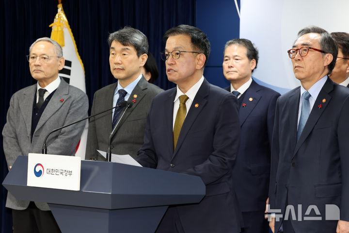 최 부총리는 이날 오전 정부서울청사에서 임시 국무위원 간담회를 연 뒤 브리핑에서 "경제와 민생은 권한대행의 권한대행이라는 불확실성 확대를 감당할 수 없다"며 "(한 권한대행) 탄핵소추를 재고해달라"고 호소했다.