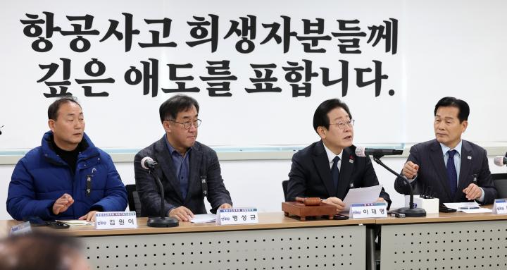 이재명 민주당 대표는 이날 오전 전남 무안군 민주당 전남도당 대회의실에서 열린 '현장 최고위원회의 및 항공참사대책위원회 긴급 연석회의'에서 "원인 규명과 대책 마련도 중요하겠지만 지금 무엇보다 중요한 것은 사고 수습"이라며 "중앙정부와 전남도당, 광주시에 적극 협력하겠다"고 말했다.