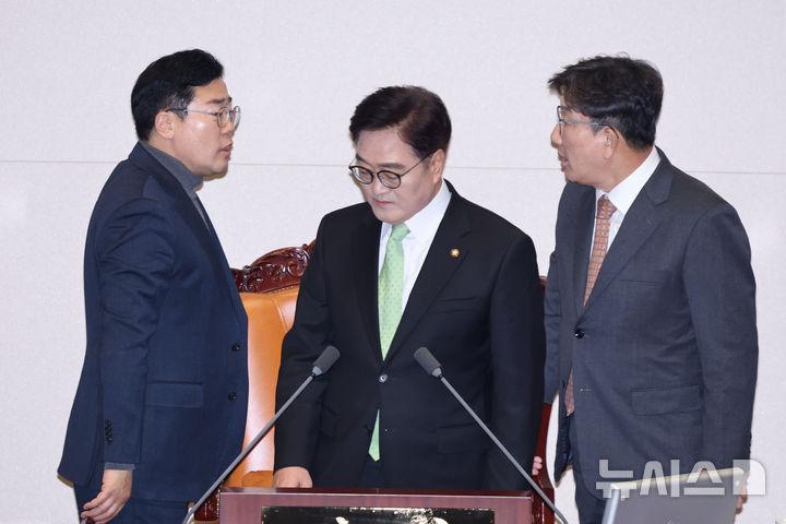 김 의원은 통화에서 "전 국민이 (제주항공 여객기 참사로) 슬퍼하고 있는 상황이다. 본회의까지도 강행하면 안 된다(는 의견이 있다)"며 이날 회의 진행에 부정적인 의견을 표했다.