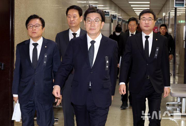당 원내지도부는 이날 무안공항 제주항공 여객기 사고와 관련, 모두발언 없이 묵념 후에 원내대책회의를 비공개로 진행했다.