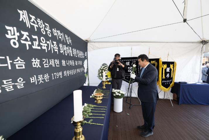 시교육청은 제주항공 여객기 참사에서 희생된 광주 학생 4명을 비롯한 179명의 희생자를 추도하기 위해 지난 30일 이음광장에 합동분향소를 설치했다.