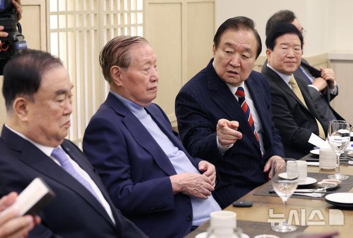 정대철 대한민국헌정회장은 31일 서울 여의도의 한 식당에서 문희상·박병석·김진표 전 국회의장과 이낙연·정세균 전 국무총리, 서청원·손학규·전병헌·황우여 전·현직 정당 대표 등을 초청한 간담회를 열었다.