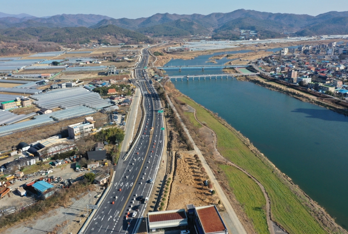 이번 확·포장공사는 교통정체 해소와 지역 간 연결을 위해 총사업비 1천256억 원이 투입된 대규모 프로젝트다. 전체 연장 6.85㎞, 4차선으로 한층 넓어지고 안전한 도로로 탈바꿈했다.