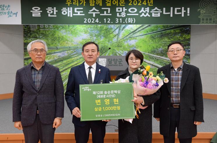이병노 담양군수는 “공모해 주신 모든 분께 감사의 마음을 전한다”라며 “앞으로도 시의 미래를 밝힐 참신한 시의 목소리를 기다리며 응원할 것”이라고 전했다.