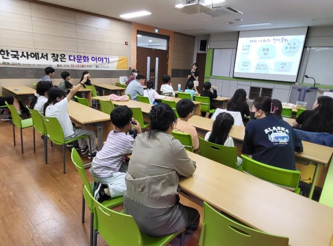 삼산도서관은 지난해 8월부터 11월까지 ‘도서관에서 다.다.다.(다문화로 다같이 다양하게) 놀자-!’라는 주제로 △도서관 속 세계여행 (이주여성 강사) △결혼이주여성 다다다 만들기(책+공예) △한국사에서 찾은 다문화 이야기(북토크) △다문화 그림책 깊이 읽기(다문화 이해)와 같이 다각적 측면에서 프로그램을 운영하고 폭넓은 계층의 참여를 유도하여 높은 평가를 받았다.