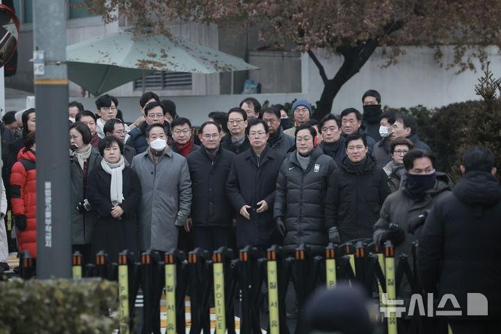 강승규·김석기·김기현·김정재·구자근·권영진·박성민·송언석·유상범·윤상현·이만희·이인선·임종득·임이자·엄태영 등 국민의힘 의원 30여명은 이날 오전 대통령 관저 앞에 집결했다. 이후 원외 당협위원장 등과 합류해 대통령 공관으로 이동했다. 이들은 관저에는 들어가지 않고 공관에서 대기할 것으로 알려졌다.