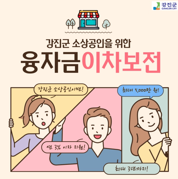강진원 강진군수는 “이번 사업이 고물가, 고금리, 고환율 3高 현상으로 침체된 내수 경기의 어려움을 겪는 관내 소상공인들에게 이자 부담 경감을 위한 든든한 지원 방안이 될 수 있도록 많은 관심을 바란다”며, “앞으로도 강진군 소상공인 지원 대책 마련 및 지역경제활성화를 위하여 최선을 다하겠다”고 말했다.