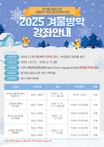 전라남도 나주시는 1월 8일부터 2월 11일까지 ‘2025년 겨울방학 프로그램’에서 4개 강좌를 운영한다고 6일 밝혔다.