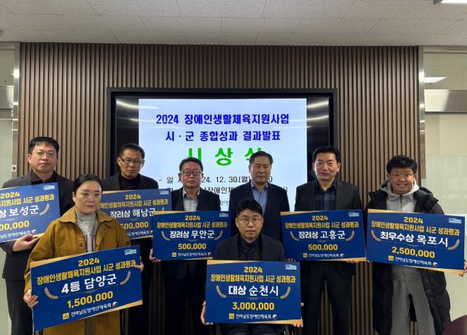 특히 순천은 2023년 성과평가 1위에 연이어 올해 1위를 수상하며, 장애인 체육 활성화와 지원에 앞장서는 모범 장애인체육회로 우수한 성과를 인정받았다.