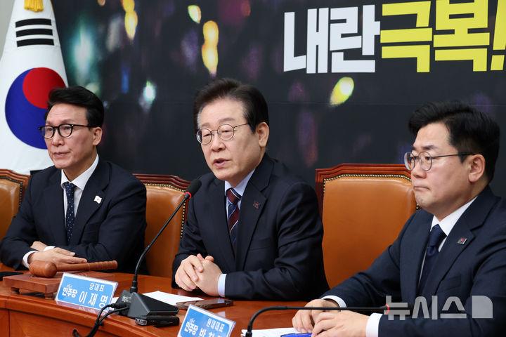 이 대표는 윤 대통령 체포 이후 연일 민생을 강조하고 있다. 이날 회의에서도 그는 "정치가 힘을 모아 해결해야 할 일은 악화하고 있는 민생경제를 신속하게 회복시키는 일"이라며 "이제 경제와 민생에 집중할 때"라고 밝혔다. 그는 "설을 앞두고 차례상 오를 설 성수품 가격이 대폭 올랐다고 한다"며 "명절 맞는 국민의 근심 더 커지고 있다"고 우려했다.
