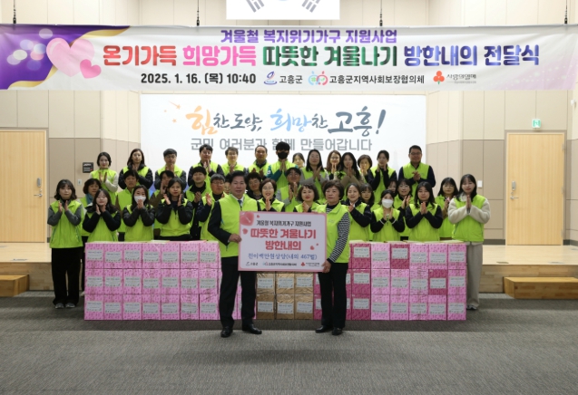 군 관계자는 “취약계층이 따뜻한 겨울을 보낼 수 있도록 조금이나마 도움이 되길 바란다”며, “앞으로도 민관 협력을 통해 지역 내 소외받는 군민이 없도록 복지사각지대 발굴에 최선을 다하겠다”고 말했다.