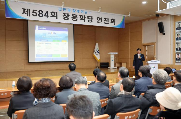 150여명이 참석한 16일 연찬회에서는 김성 장흥군수가 강사로 나서 2024년 한해를 돌아보고 2025년 군정 운영 방향을 설명했다.