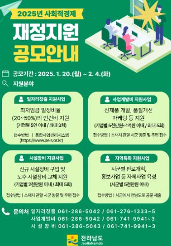 전남에 있는 예비·인증 사회적기업이 인건비 지원을 원하면 사회적기업통합정보시스템에 접속해 신청하면 된다.