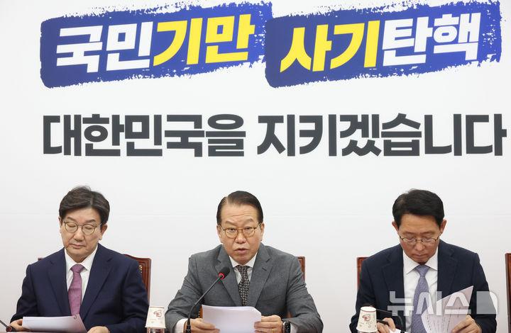권영세 비상대책위원장은 이날 오전 국회에서 열린 비대위 회의에서 내란 특검법에 대해 "한마디로 민주당을 위한 수사기관을 만들겠다고 선언한 것"이라고 밝혔다.