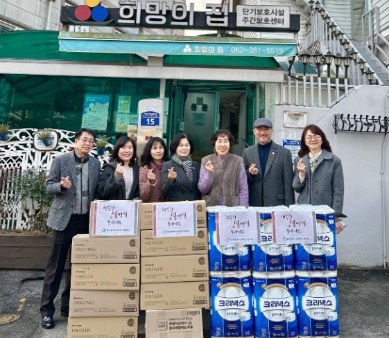 광주교육연구정보원 직원들은 설을 맞아 지역사회에 온정을 나누고, 따뜻한 공동체 분위기를 조성하기 위해 ‘희망의 집’을 찾아 물티슈, 세제 등 생활용품을 전달하고 따뜻한 명절인사를 나눴다.