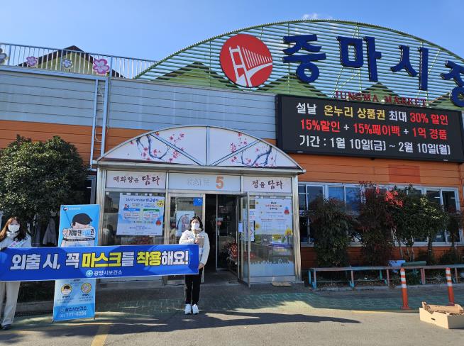 광양시는 시민 1,000여 명에게 마스크를 배부하고 호흡기 감염병 예방수칙을 안내하며 상황의 심각성을 알렸다.