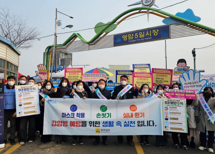 전남도는 설을 앞둔 20일 영암읍 5일시장 일원에서 영암군보건소, 전남도감염병관리지원단 등 50여 명이 참여해 병문안 문화개선 캠페인을 펼쳤다.