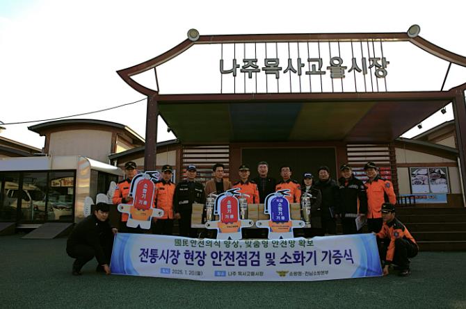 박상진 대응예방과장은 “전통시장은 화재에 취약한 구조적 특성을 가지고 있어 선제적 대비가 중요하다.” 라며 “기증된 소화기를 활용해 상인들의 초기 대응력을 높여 상인과 방문객의 생명과 재산을 지키겠다.”라고 말했다.