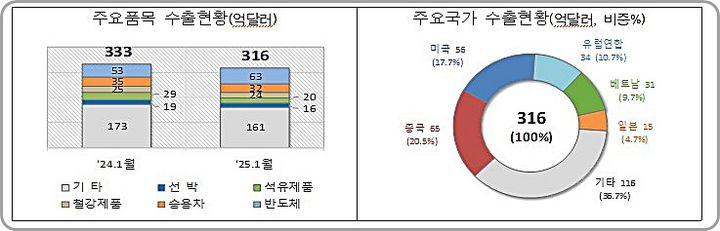수입의 경우 전년 동기 대비 반도체(18.0%), 기계류(8.2%), 반도체 제조장비(6.5%) 등은 증가한 반면 원유(13.8%), 가스(8.8%), 석유제품(8.4%) 등 감소했다.