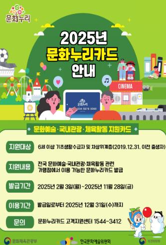 지난해 문화누리카드 발급자가 올해에도 수급자격을 유지하는 경우, 별도의 신청 절차 없이 보유한 카드에 자동 지급된다.