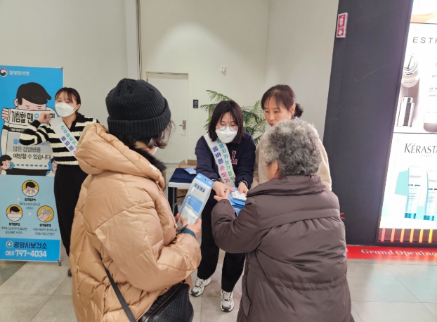 캠페인은 각종 겨울철 감염병 예방의 중요성을 알리기 위해 진행됐으며 다중이용시설 이용객 1,000여 명을 대상으로 손소독 물티슈 및 알콜스왑 등 소독용 홍보물을 배부하고 감염병 예방수칙을 안내했다.