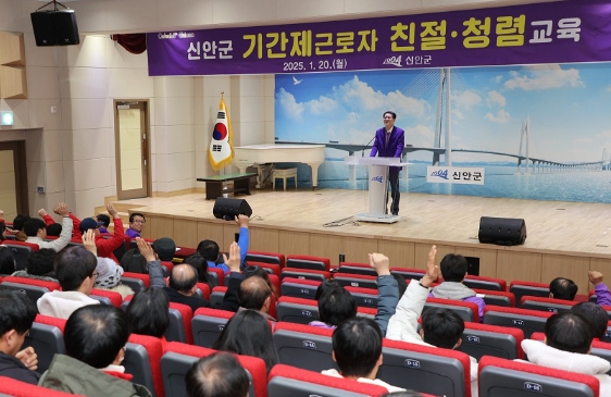 신안군은 기간제 근로자를 대상으로 연 2회 전문 강사를 통해 친절교육을 실시할 예정이며 친절한 서비스 제공으로 군민 만족과 군민 감동을 실현하겠다는 계획을 밝혔다.