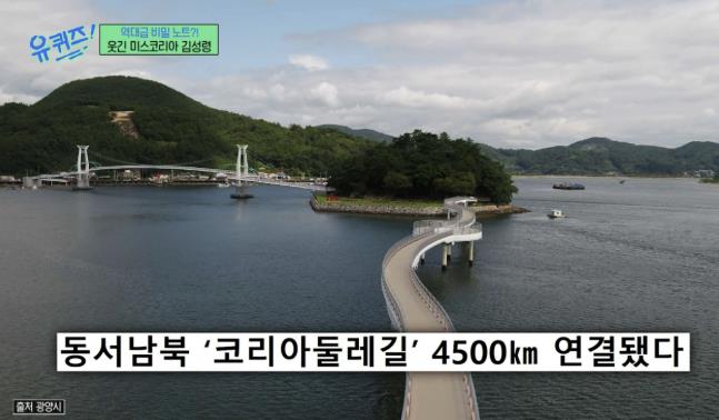 이날 방송에서 초대 손님으로 출연한 배우 김성령은 혼자 여행을 다니냐는 진행자의 질문에 코리아둘레길을 언급했다. 시청자의 이해를 돕기 위해 참고 자료가 제시됐으며, 지난해 광양시에서 보도자료(‘걷기 여행주간에는 섬진강 물결 따라 남파랑길 광양로드’)와 함께 배포한 배알도 섬 정원 일대의 수려한 풍경 사진이 TV 화면을 가득 메웠다.