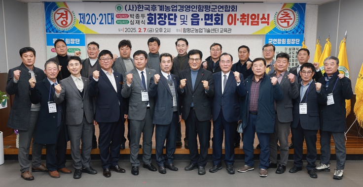 제21대 심재식 회장은 “역대 회장님들의 열정과 뜻을 이어받아 한국후계농업경영인회의 위상을 높이겠다”며 “기후변화 대응, 기술 혁신, 글로벌 시장 개척 등 함평군 농업 혁신을 선도해 나가겠다”고 포부를 밝혔다.