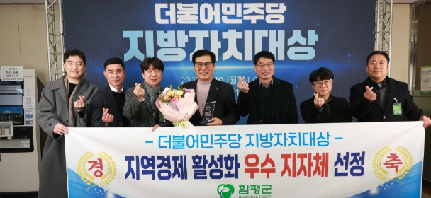 함평군은 10일 “‘더불어민주당 지방자치대상’이 이날 오후 국회도서관 대강당에서 개최됐으며 함평군이 지역경제활성화 부문에서 우수상을 수상했다”고 밝혔다.