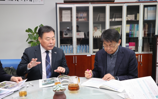 이날 김산 군수는 서삼석 지역구 국회의원을 만나 무안군의 주요 현안 사업들을 상세히 설명하고 예산 확보를 위한 협조를 요청했다.