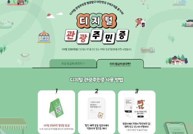 디지털 관광주민증은 관외에서 지역을 방문한 관광객들이 음식점이나 체험·관람·숙박시설 등에서 할인 혜택을 받을 수 있는 일종의 명예 주민증이다.