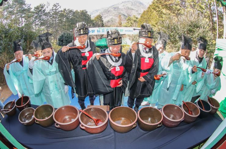 행사는 시립국악단의 민요 공연을 시작으로, 광양향교의 주관 아래 12개 읍·면·동의 화합을 상징하는 합수제, 초헌관·아헌관·종헌관이 참여하는 약수제례, 음복 순으로 진행됐다.